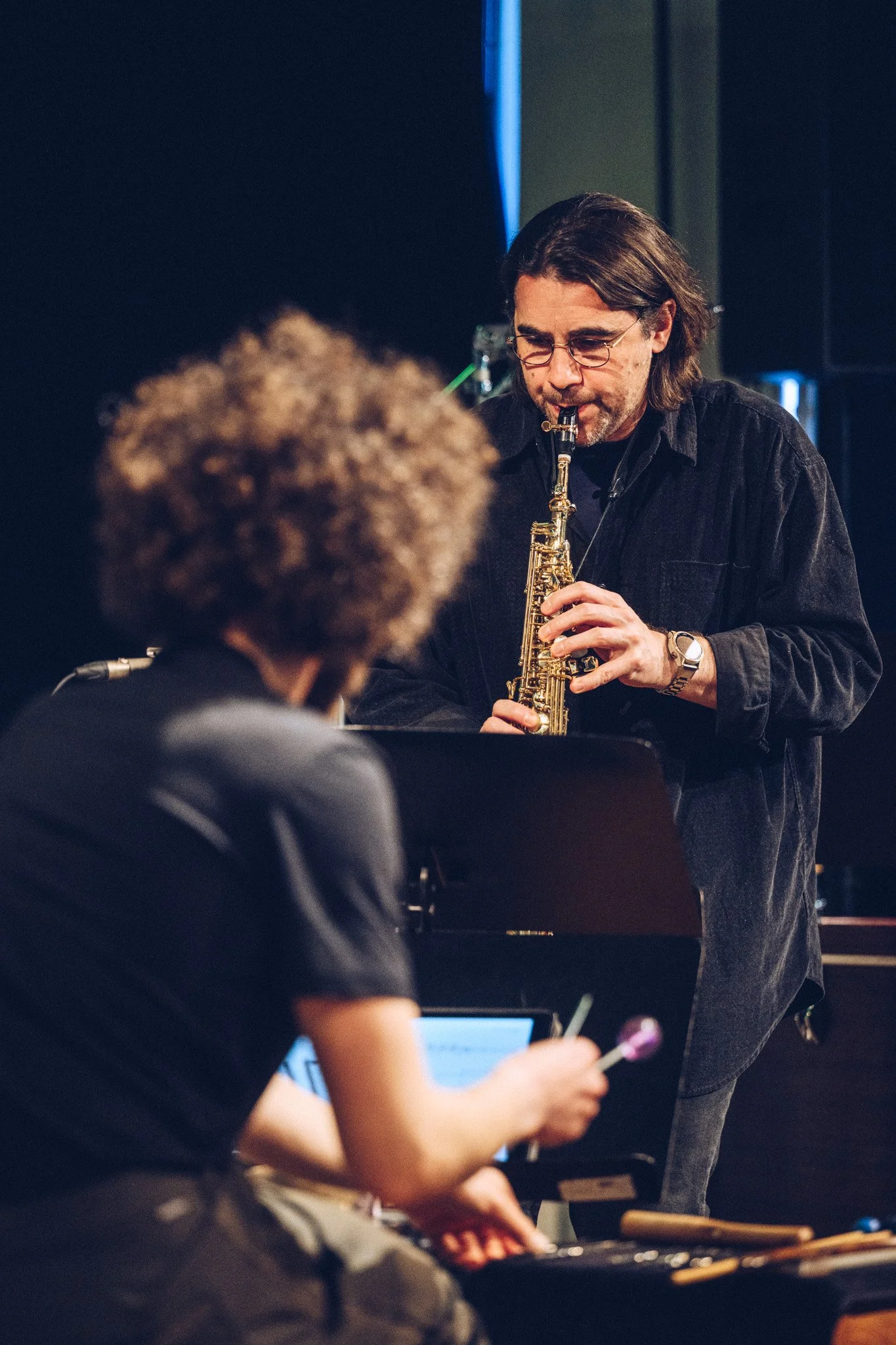 Miguel R. Fernández de la Fuente (saxophone) and Santiago Villar (percussion) at the Basel Academy of Music.